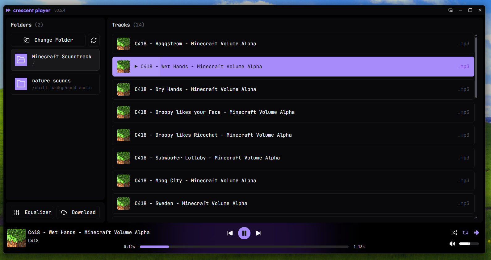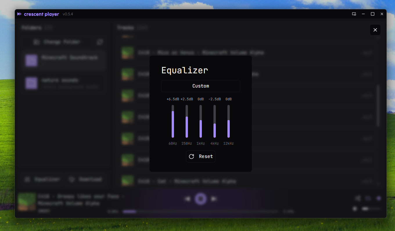 Basic local music player app with shuffle, customizable EQ and built in Youtube mp3 downloader.